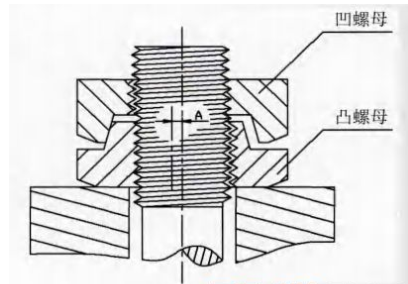 HARDLOCK是雙螺母(見圖3),內螺母外側設有偏心的突起;外螺母為普通螺母結構,其內側設有同心的凹槽;外螺母備緊時內螺母的外側凸起與螺栓不同心,內螺母的偏心突起與螺栓受到外螺母的擰緊擠壓產生徑向力,相當于在螺紋間隙中增加了鍥子,螺紋全方位鎖緊。